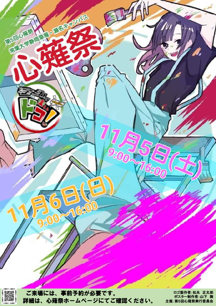 11月2日(土曜日)・3日(日曜日)、常葉大学静岡草薙キャンパスにて、第2回心薙祭が開催されました。常葉大生約200団体が参加し、約12,000人の一般来場者がありました。各学部の特色を活かした教室での展示・研究発表、ステージでの圧巻のパフォーマンス、個性豊かな模擬店、その他ゲストライブや催し物が企画され、キャンパス内に大学生の活気が溢れました。