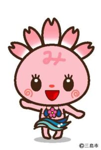 額の「み」はみしまの「み」。頭の花びらは「三島桜」をイメージしてい